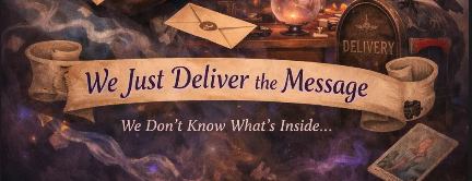 Text reading “We just deliver the message. We don’t know what’s inside,” symbolising the role of a medium as a messenger rather than an interpreter.